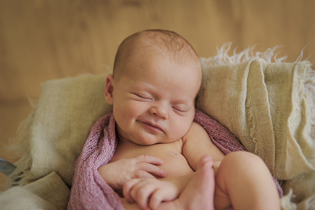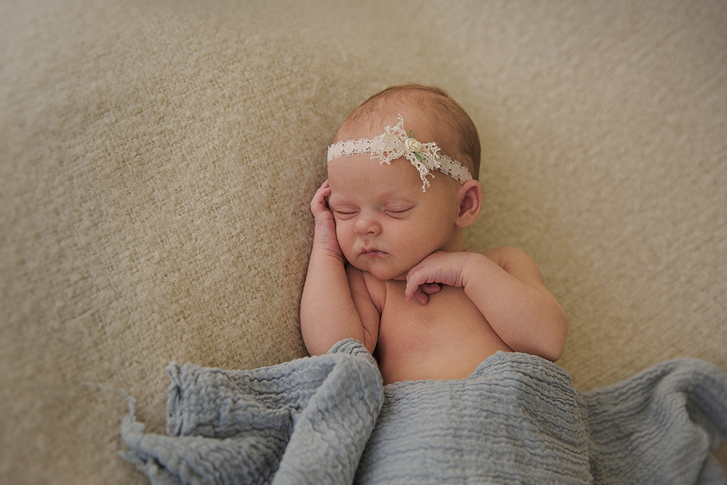 My style is generally quite natural and you won’t find any crazy aeroplane props and turtle costumes in the studio! You will find a broad selection of tasteful pretty hairbands, fluffy blankets, wraps and rustic baskets and you can help choose the ones you like. You are also very welcome to bring some of your own things, maybe a teddy or a blanket to include in your shoot, to make your images even more personal to you and your baby. I will always try to shoot a mix of “prop” images as well as more natural images, so you get a good selection to choose from.