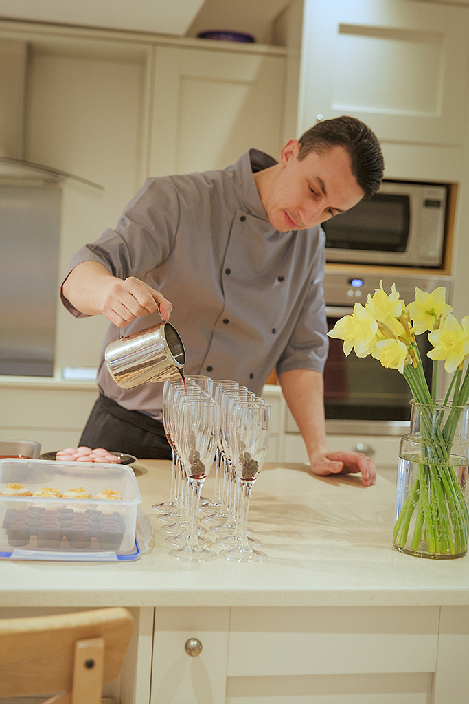 In the morning of Audrey’s launch event Sian and her two Rosette Head Chef husband are working hard in the kitchen, and we are shooting both still images and some video of the preparation work. They are meticulous about everything, the details, quantities, finishings and even setting the table and I am super impressed even before tasting any of the food!